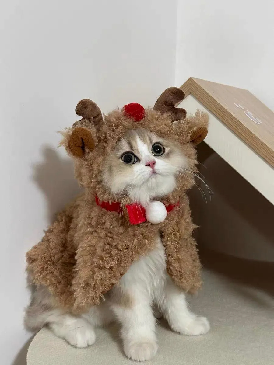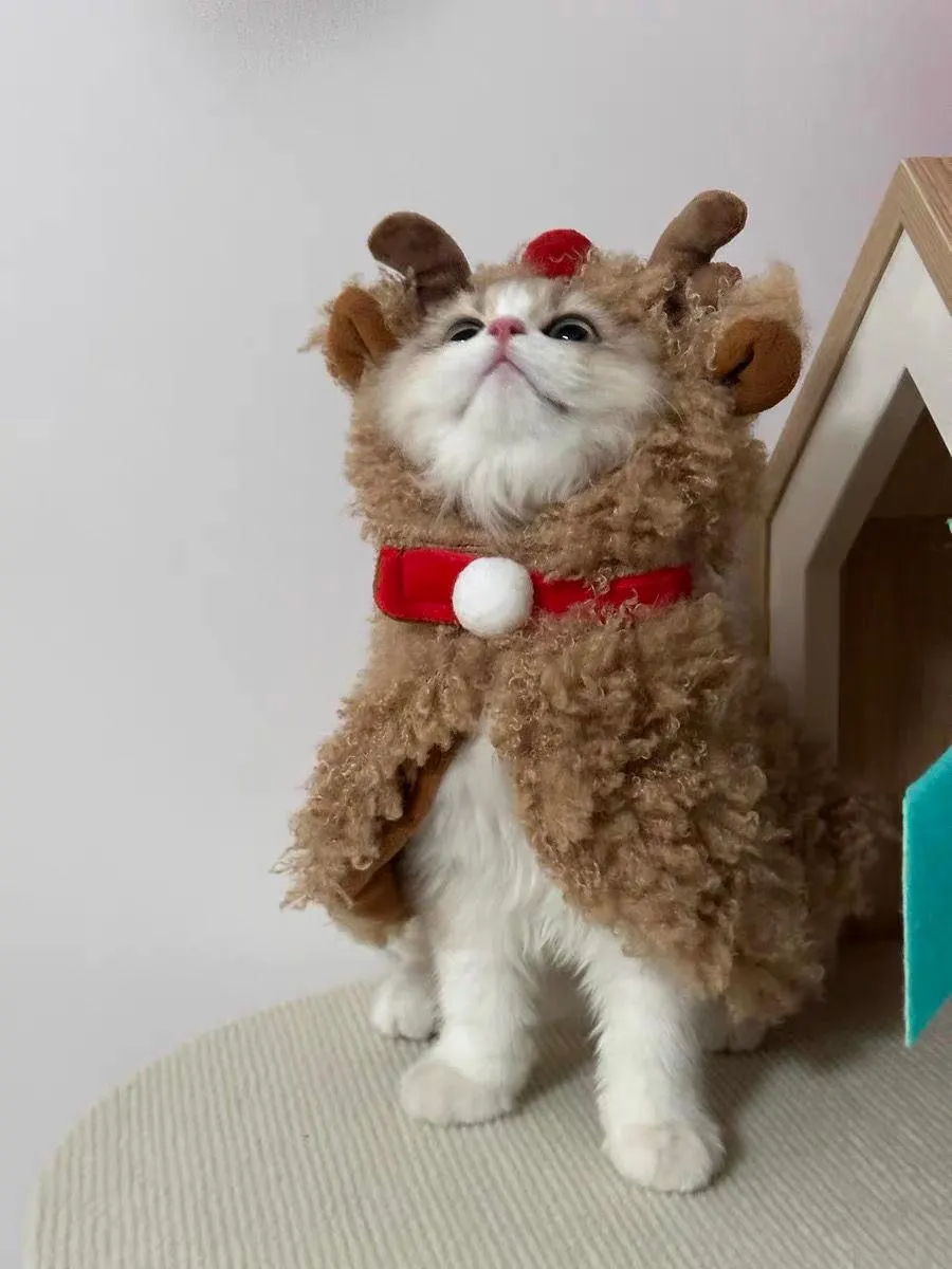 This isn't your average plush cape; it's a 3D "mini Christmas reindeer" design, with sweetness hidden in every cat-friendly detail.