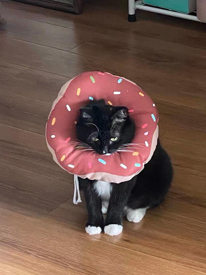 **Visitor Focus Moments:** When friends come over, your black cat, wearing the scarf, strolls out. The contrast between the pink donut and its black fur will immediately draw all eyes. Your friends will exclaim, "Is this cool kid forced to pretend to be sweet?" The sound of camera shutters snapping photos with it can last all night.