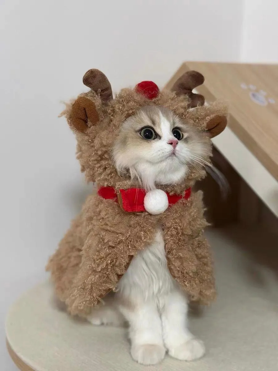 This isn't your average plush cape; it's a 3D "mini Christmas reindeer" design, with sweetness hidden in every cat-friendly detail.