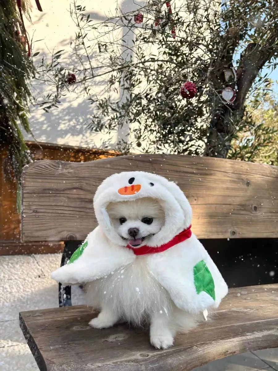 Loose-fitting cape design: The cape is a lightweight, naturally draping style, its length just covering your pet's waist and back. It won't rub against the ground or get dusty, and it sways gently when running, like a little snowman hopping lightly in the snow;