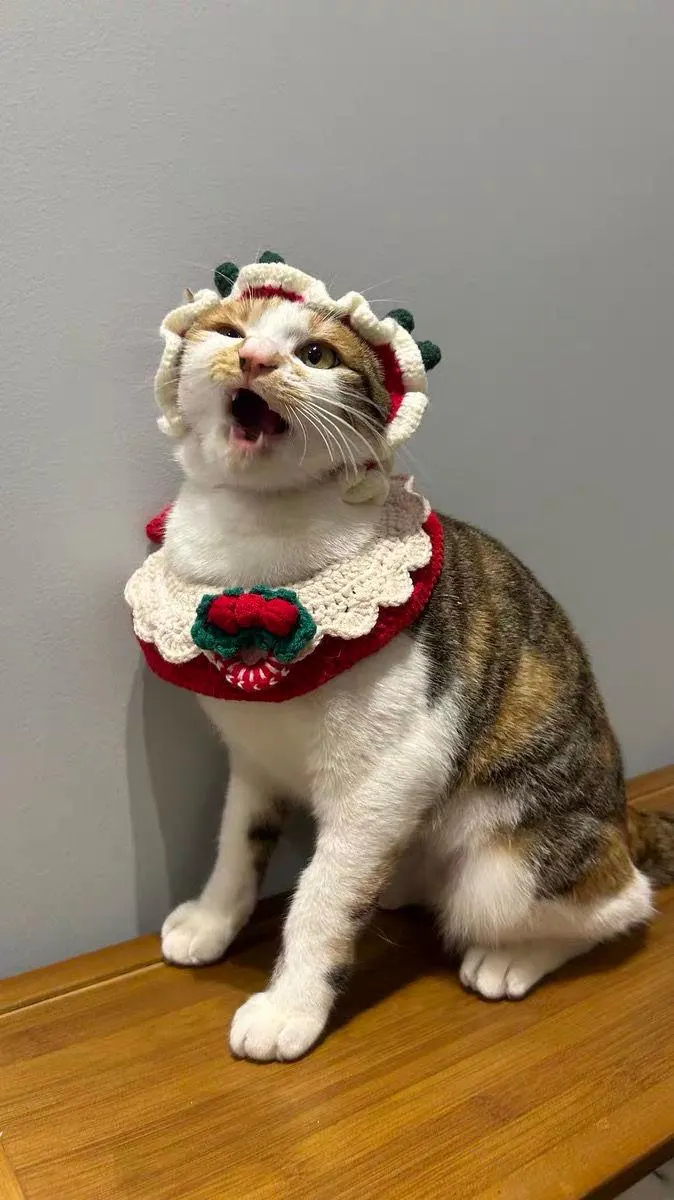 This set is crafted entirely from fine, high-elastic crochet yarn, boasting a soft and delicate texture that's irresistibly inviting to touch. The crochet yarn is made from a pet-friendly, soft material, feeling warm and soft like a Christmas hot cocoa blanket. Without any stiff crochet burrs, it won't snag or cause itching around the ears and neck of short-haired cats like tabby cats. It also prevents snagging on the fur of long-haired cats, ensuring comfort and freedom of movement.