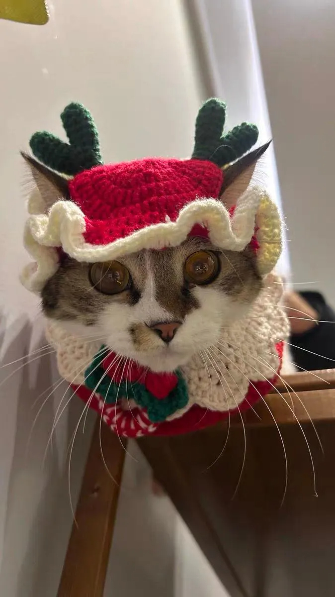 A perfect tool for capturing festive moments: Wear it when taking Christmas photos of your cat. The crochet texture and reindeer element give the photos a "Christmas forest filter," guaranteed to garner "This Christmas cat is so good at dressing up!" interactions on social media;