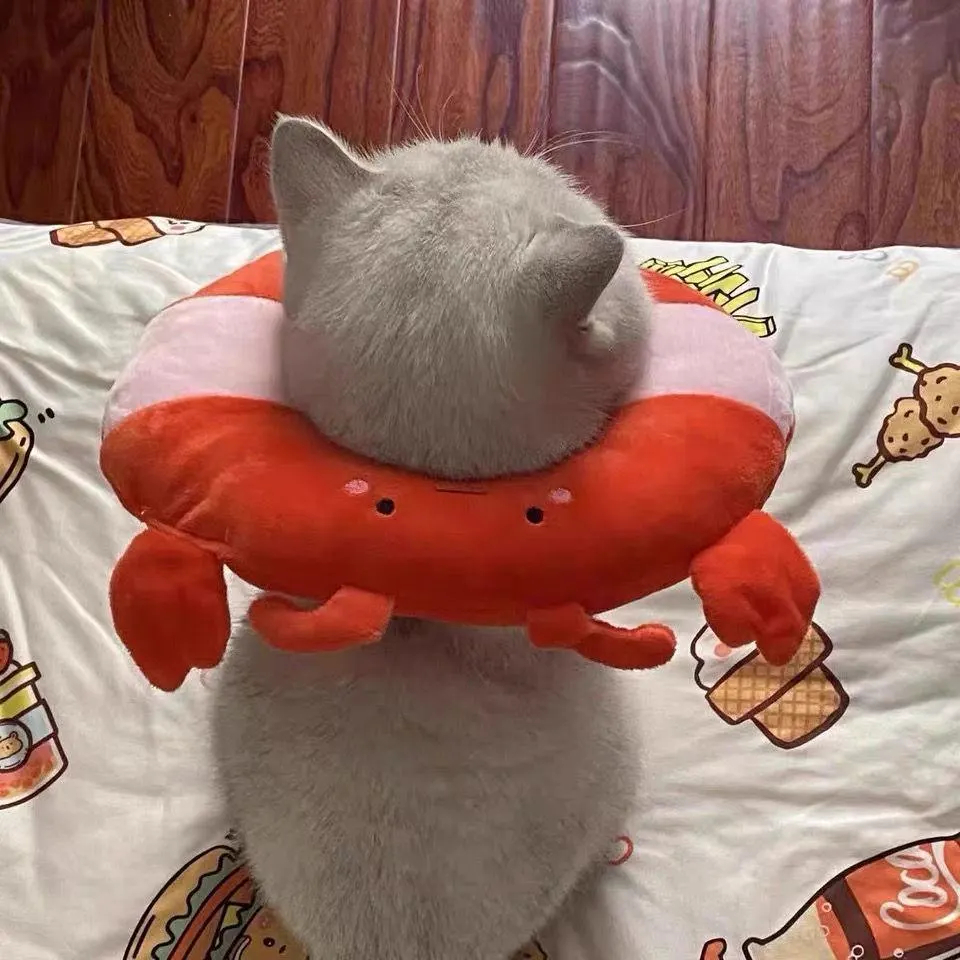 As the relaxed feeling of summer permeates daily life, this cat scarf, inspired by a "seaside lifebuoy + adorable little crab," is the perfect cute accessory to instantly transform your furry friend into the "summer's energy savior." It's like a brightly inflated lifebuoy from the beach, wrapped in soft, plush fur, and secretly "stuck" with a round, plump little crab. The moment your cat puts it on, they'll look like an adorable little rascal just strolling off the beach, radiating a refreshing liveliness even when they're just spacing out.